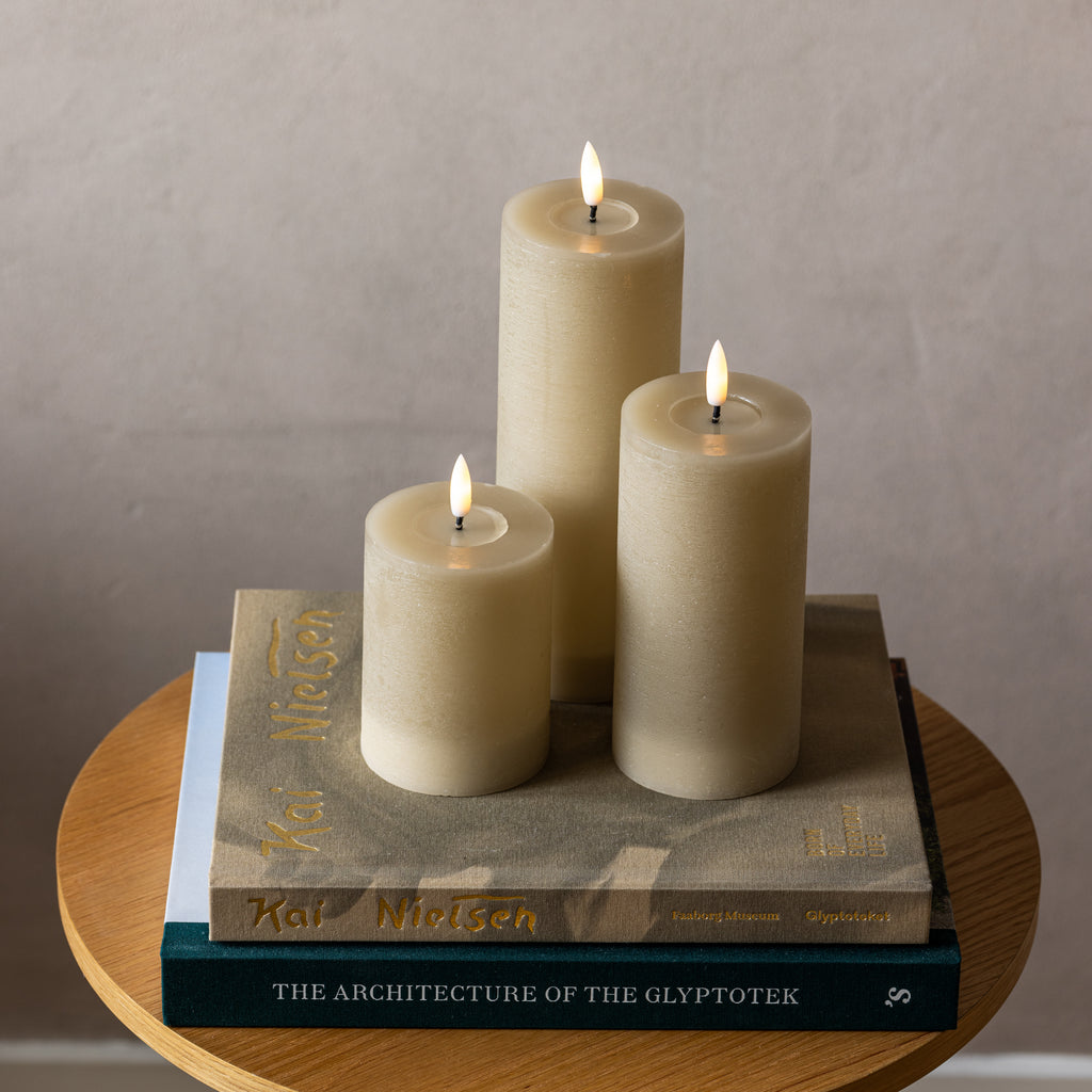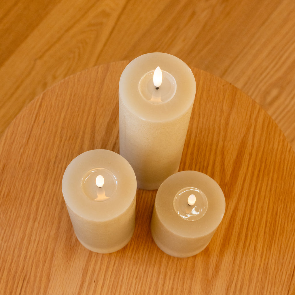 Sia LED pilarikynttilä ladattava Ø 7,5 X 15 cm Hiekka