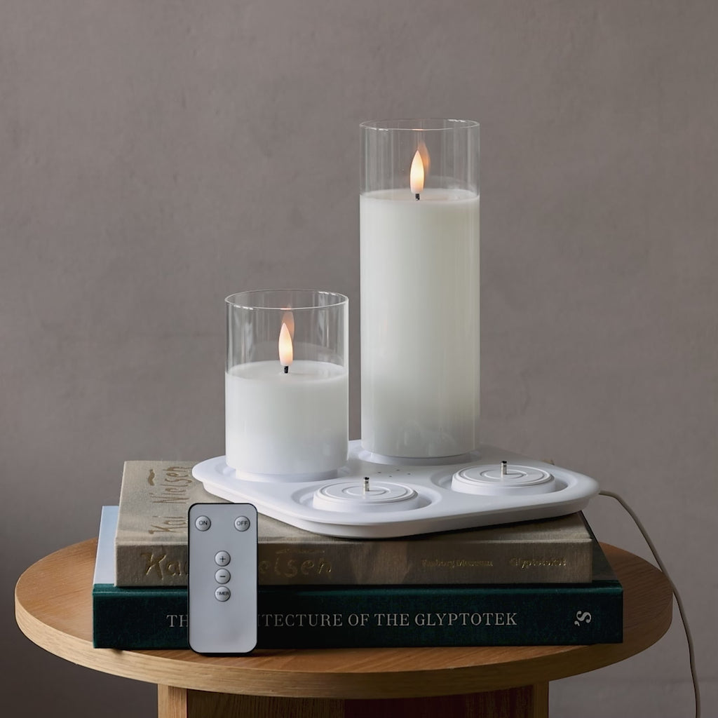 Tämä on täydellinen ”hygge”-pakkaus, jossa on LED-valo, latauslevy ja kaukosäädin.